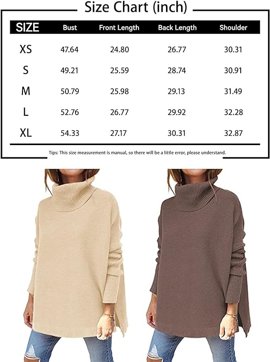 - ★Design:Turtle cowl neck,long batwing sleeve,high low split hem,solid color,tunic top sweater,knitwear casual style,oversized sweater.